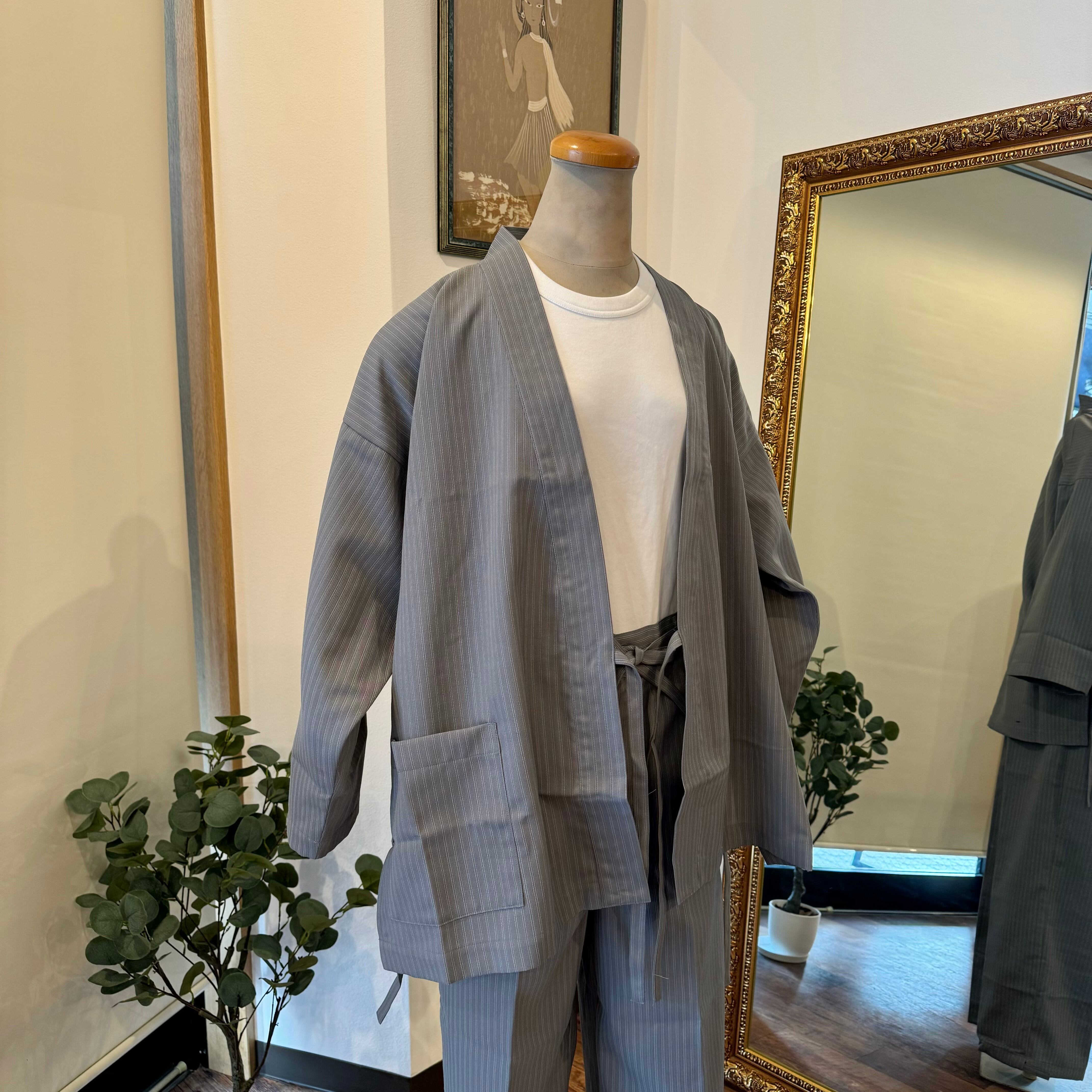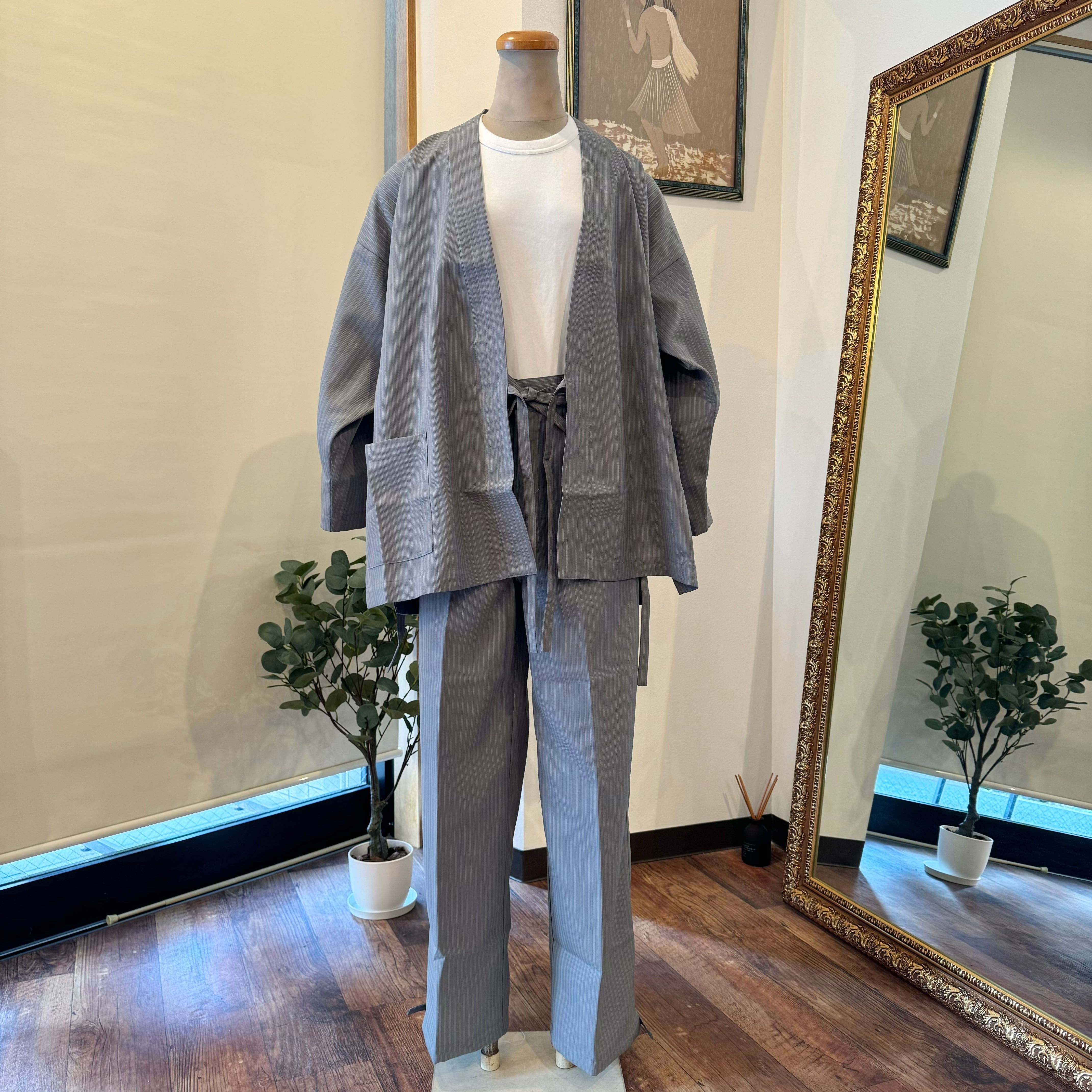 サマーウール作務衣(グレー縞)