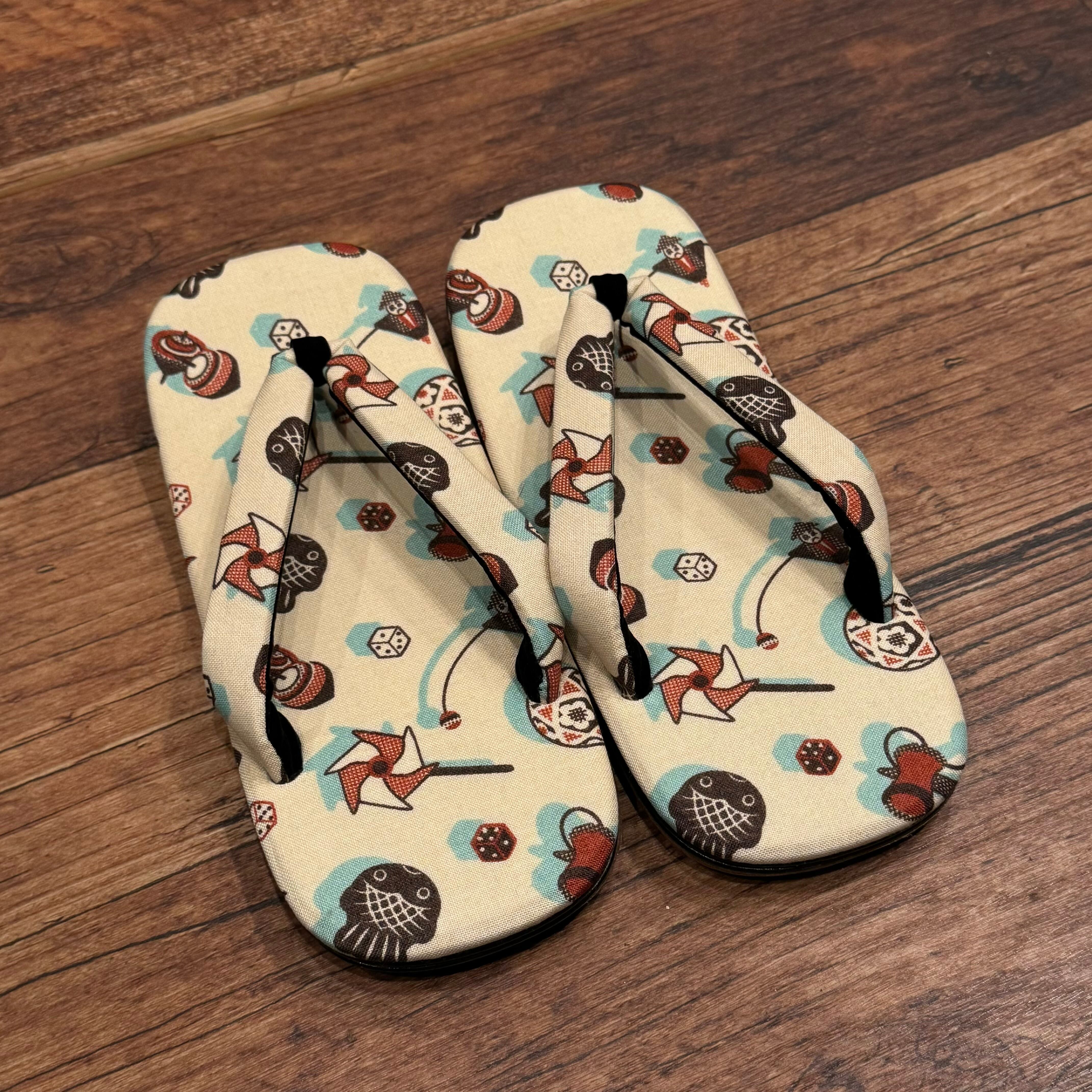 厚めの飴ゴムでできた底材を使用した雪駄です。