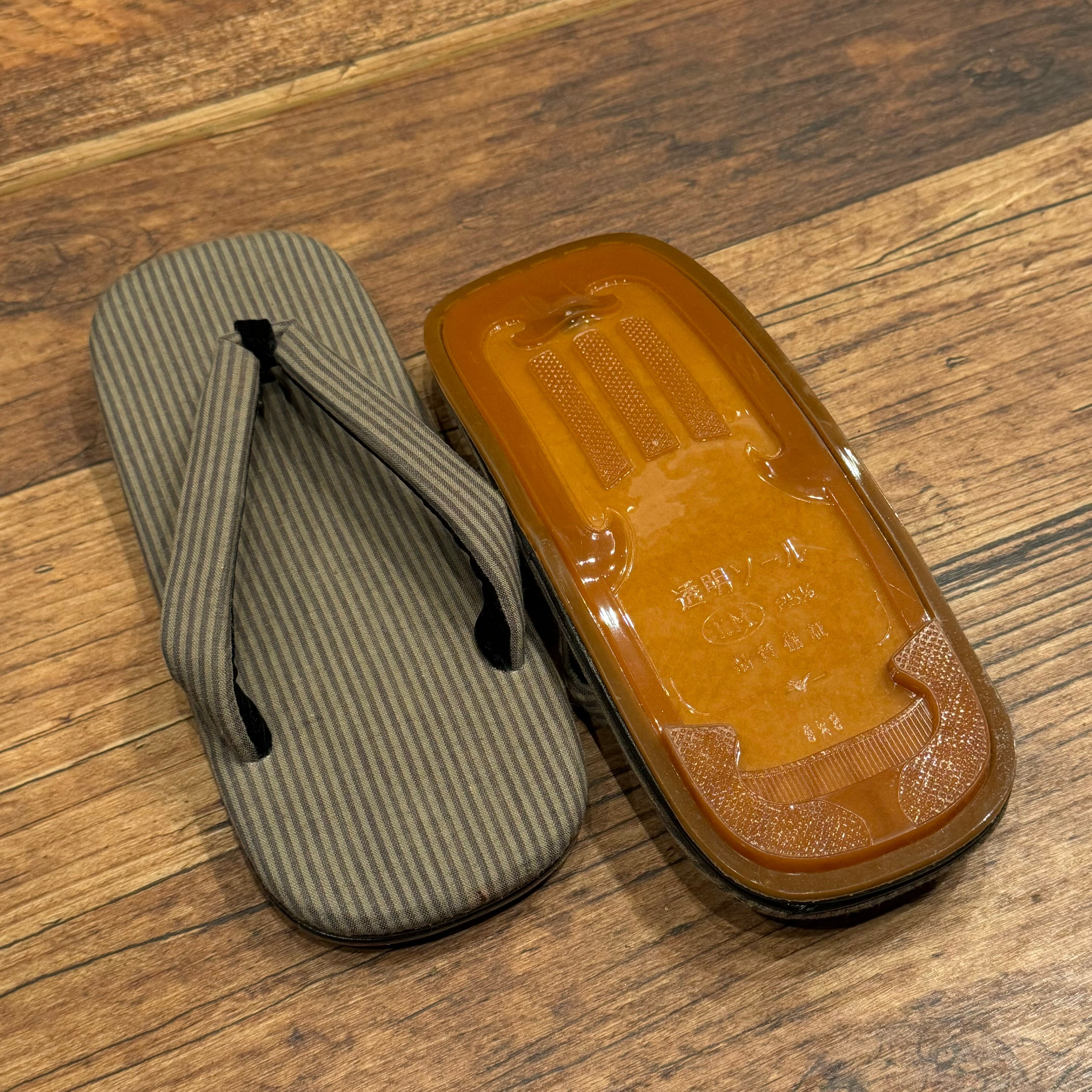 厚めの飴ゴムでできた底材を使用した雪駄です。